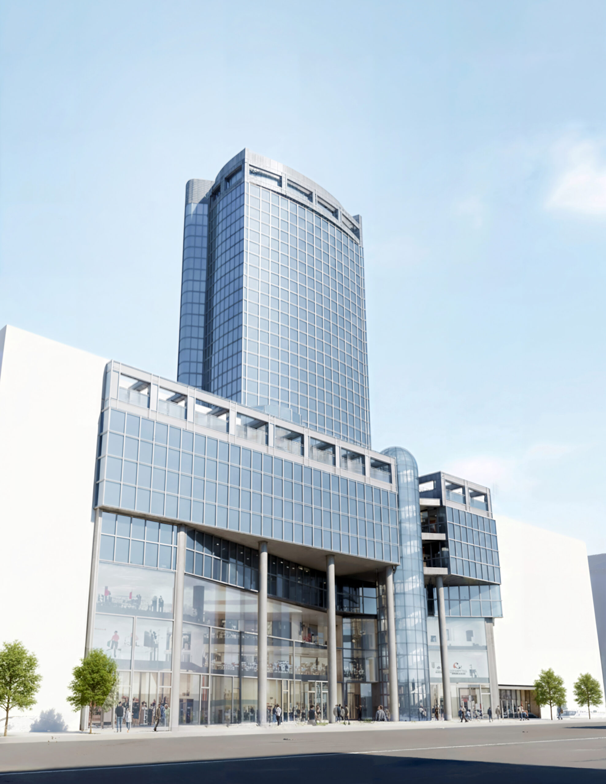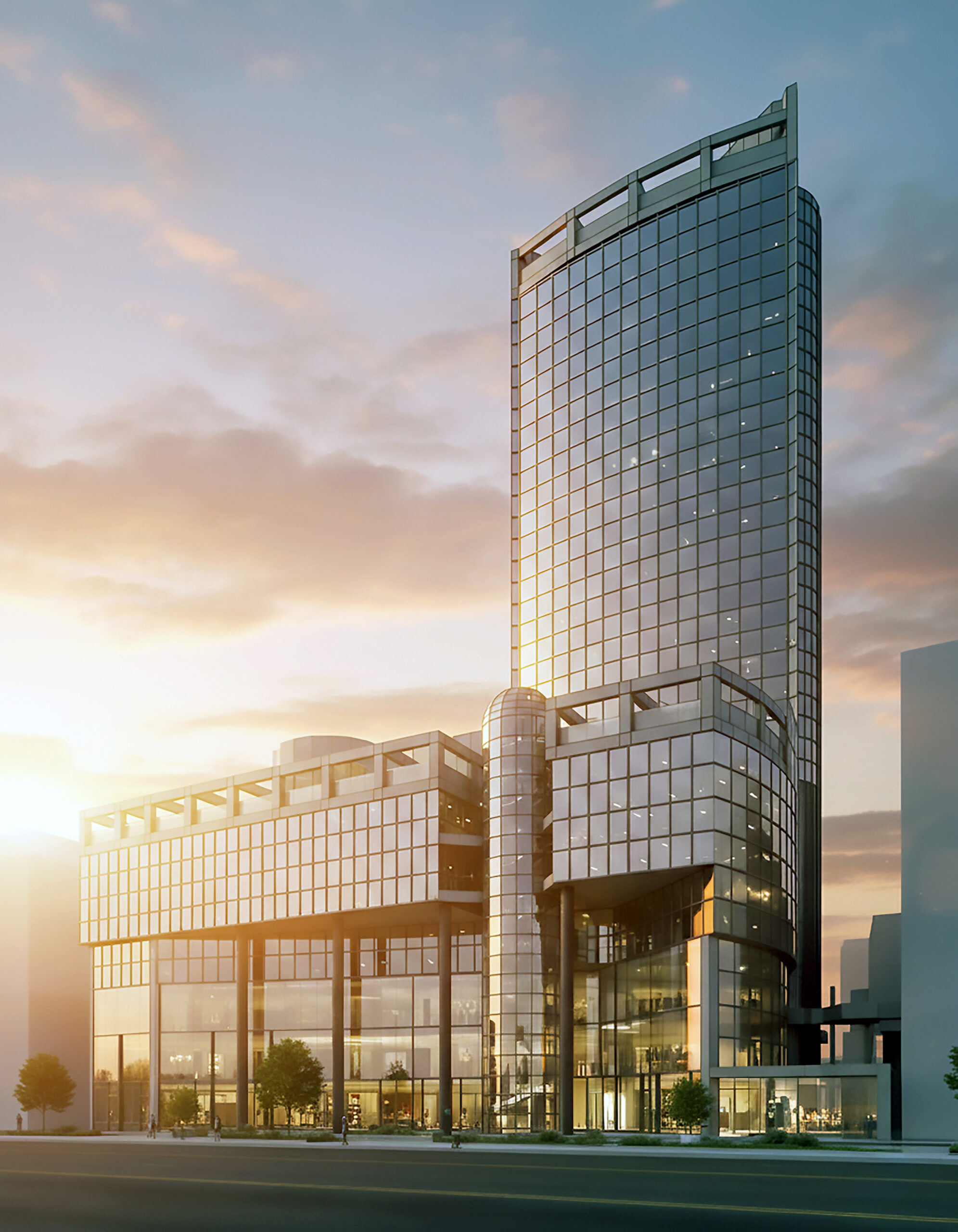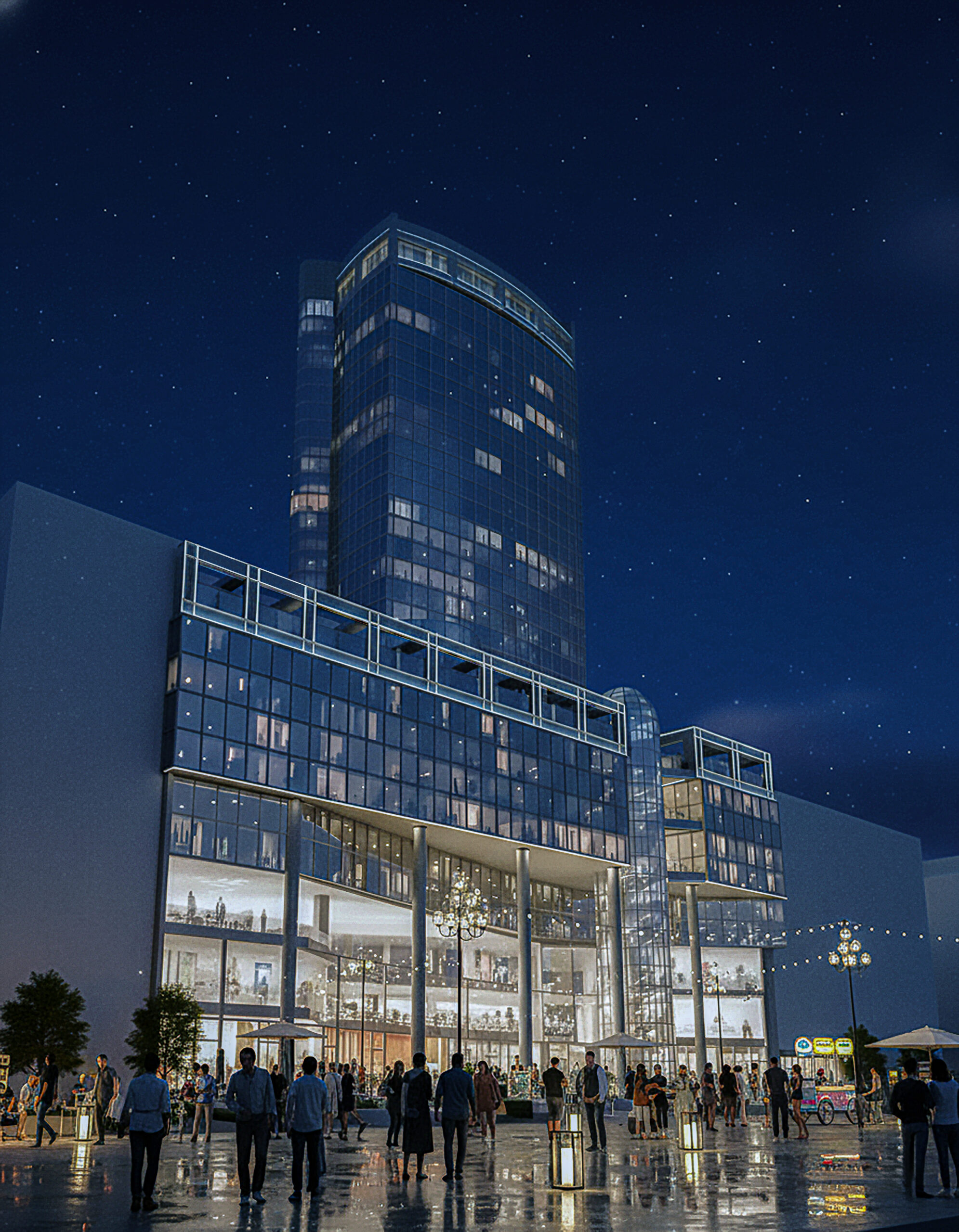 The project is located in the city center and features social gathering and entertainment venues such as shops, offices, cafes, and restaurants. The most significant aspect influencing the design's architectural form is its connection to the city. The site occupies a single-facing position adjacent to the main street. The design creates a defined void on the street at the front, extending it towards the building. This creates a spacious urban space within a relatively narrow street while simultaneously establishing a strong spatial connection between the building and the street at a human scale. Another significant feature of the urban context is the presence of an existing historic street behind the site, one of the city's most important commercial axes. The dead-end pedestrian path connecting to this street on the east side of the site has been continued, and the back and front streets have been relocated from the site to connect to the main street. This newly created pedestrian path, which continues the existing urban fabric, creates a vibrant pedestrian path accommodating small shops and integrates them into the design. In addition to providing the building's office entrances, this pedestrian path provides access to shopping areas, including a spacious gallery space, for pedestrians coming from the rear street. It also allows daylight to enter the building's eastern façade. Another feature influencing the building's architectural form is the idea that office, shopping, and social spaces can be used independently, which shaped the design. The café-restaurant on the upper floor of the block facing the main street, even when other entrances are closed, connects directly to the street via a viewing staircase and a transparent elevator inside a tube that connects to the street. Similarly, the bowling café areas in the basement are directly connected to the street via stairs designed to the east. The architectural form of the design is determined by the basic decisions that determine the environmental context and the detailed information reflected in the design.